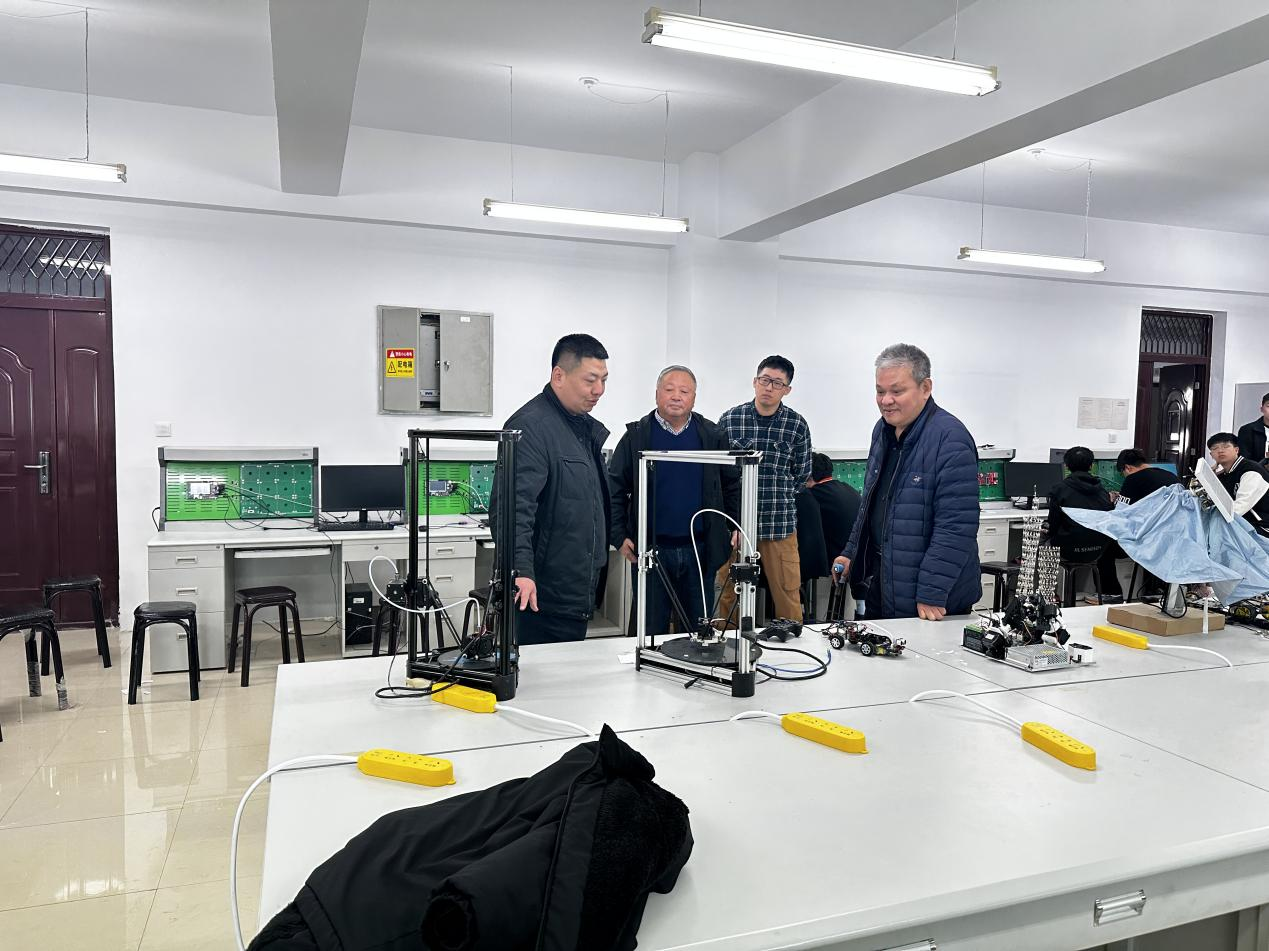 随后,创新创业学院和智能工程学院领导走访了智能工程学院实验室。通过此次走访调研,创新创业学院与智能工程学院加深了相互之间的了解与合作,共同探讨了创新创业教育的发展方向和路径,为未来的合作奠定了坚实的基础。相信在双方的共同努力下,将为培养更多具有创新意识和创业能力的优秀应用型人才贡献更多的力量。