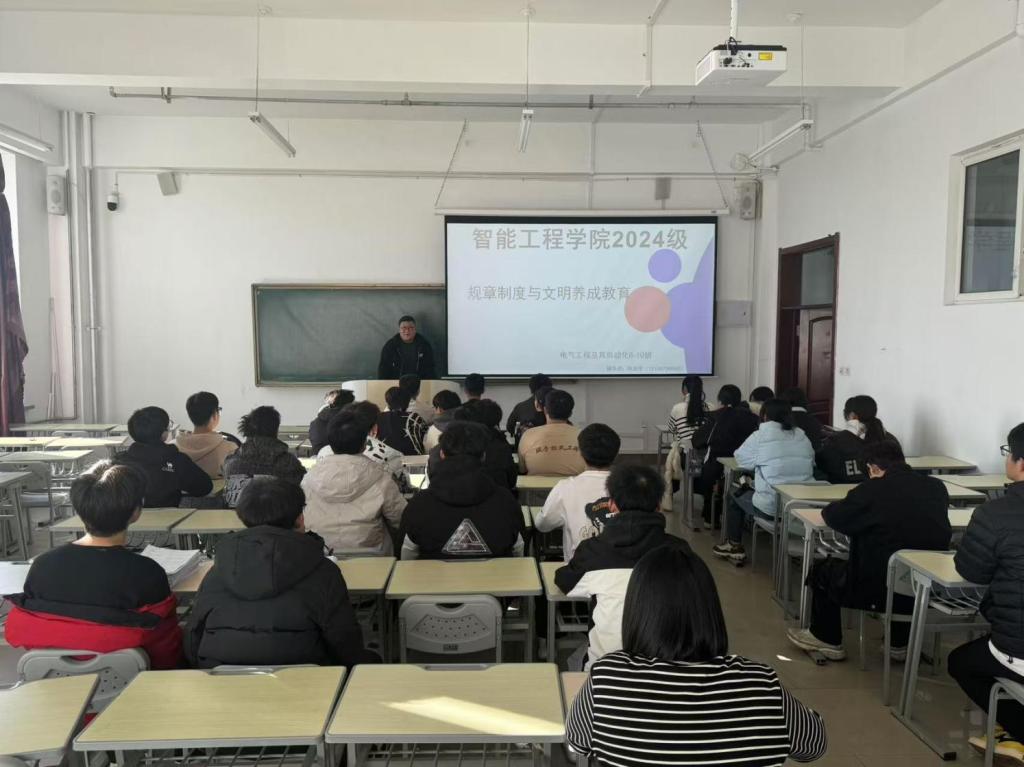 “不以规矩,不能成方圆”,为加强学生对学院规章制度的理解和重视,引导学生自觉遵守规章制度,智能工程学院为2024级学生开展了以“规章制度是灯塔,照亮前行之路”为主题的班会。通过对规章制度的学习和讨论,让学生明确规章制度的重要性,使其能在规章制度的指引下,更好地规范自身行为,合理规划大学生活,促进自身成长和发展。