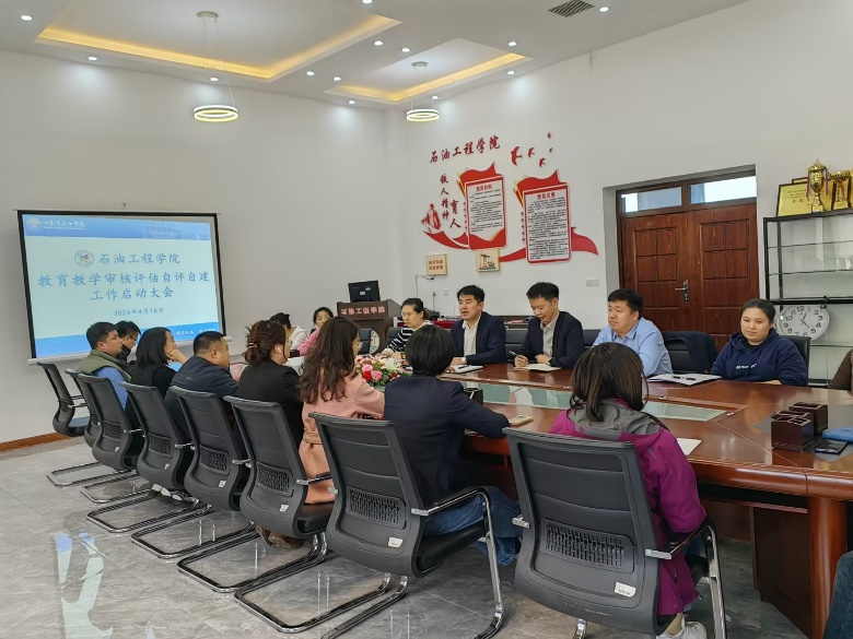 为迎接教育部新一轮审核评估,深入贯彻落实《44118太阳成城集团本科教育教学审核评估自评自建工作书实施方案》,切实做好自评自建工作,4月16日,我院召开了石油工程学院教育教学审核评估自评自建工作启动大会。本次会议由李岳祥院长主持,朱砂副院长、各专业系主任及全体教师均出席会议。