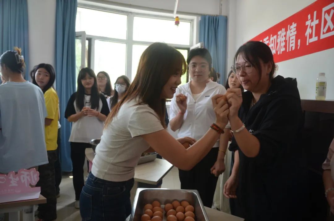 同学们在包粽子过程中互相帮助、互相学习、互相合作,一个个形态各异的粽子在一双双巧手下很快“诞生”,整个过程充满了快乐和挑战,现场氛围轻松又热烈、温馨又融洽,不仅锻炼了同学们的动手能力,也让同学们深刻感受到了传统文化的魅力。活动现场,同学们通过撞鸡蛋小游戏,在欢声笑语之中,将端午安康的祝福送予对方,彰显了浓浓的同学情谊,掀起了活动高潮。活动最后,师生互系五彩绳,把最美好的祝福送给彼此。太阳成官网其他社区也开展了读书分享、茶话会等活动。