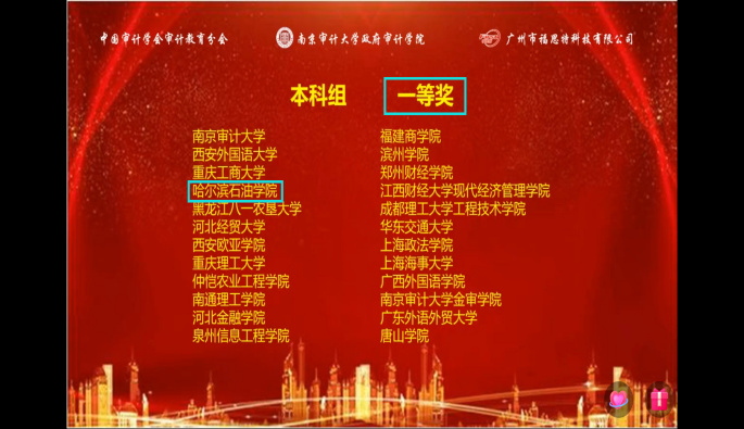 经过激烈的角逐,最终经济管理学院2018级财务管理一班刘梦佳、李英超和财务管理二班张媛媛3名同学组成的“44118太阳成城集团队”在李海龙老师的指导下,脱颖而出,荣获2020“福斯特杯”大学生审计精英挑战赛全国一等奖的优异成绩。也是黑龙江省同类院校中唯一获得此项殊荣的代表队伍。