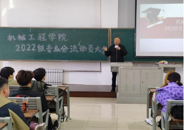 为切实做好我院大类招生专业分流,加强2022级学生对我院各专业的认知,提升培养人才质量。大会旨在帮助同学们深入了解即将选择的各个专业的具体情况,科学引导同学们在专业分流选择时,尽可能地结合自身兴趣和成长成才规划做出合理的专业方向选择和职业规划定位。4月23日下午,机械工程学院在主教401、404展开2022级专业分流动员大会。出席会议的领导有机械工程学院院长王俊发、党总支书记苏永彬、副院长韩蓉、各系主任、辅导员张丽莉、吕博萱及2022级机械类专业全体学生,本次大会由辅导员张丽莉、吕博萱主持。