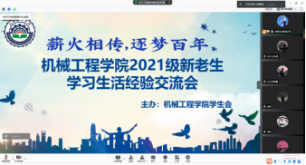 为了帮助我院2021级同学们更快地适应大学生活,使2021级同学们在以后的学习生活中能少走弯路,正确处理好学习、生活、工作之间的关系,让大学生活过得更加美好,由机械工程学院学生会主办的“薪火相传,逐梦百年”2021级新老生学习生活经验交流会于2021年11月11日在腾讯会议成功举行。参加本次活动的有机械工程学院党总支副书记徐靖宇、辅导员李俊松、刘博文老师以及2021级全体同学。本次交流会邀请了已经走向工作岗位或考研成功上岸的2017级学长学姐、2019级优秀学生代表,来为同学们讲解考研经验、学习经验、作为学生干部的经验以及在大学学习工作生活中的感悟。