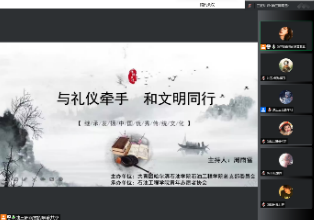为了更好地培养学生社会主义核心价值观、弘扬和传承中华民族优秀的传统文化,以更好的风貌喜迎二十大。7月2日,石油工程学院在腾讯会议开展了“与礼仪牵手 和文明同行”主题演讲比赛活动。学院党总支书记刘雁春出席本次活动,学院学生会干部及学生代表196人共同参加此次活动。