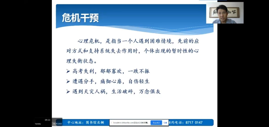 为进一步提高大学生的心理素质,促进大学生的身心健康和谐,宣传普及心理健康知识,提高校园心理危机的预防,保障同学们的身心健康,9月6日,我院开展心理健康讲座,此次讲座由大学生心理健康教育咨询中心教师赵全宇主讲,全体2022级新生参加。