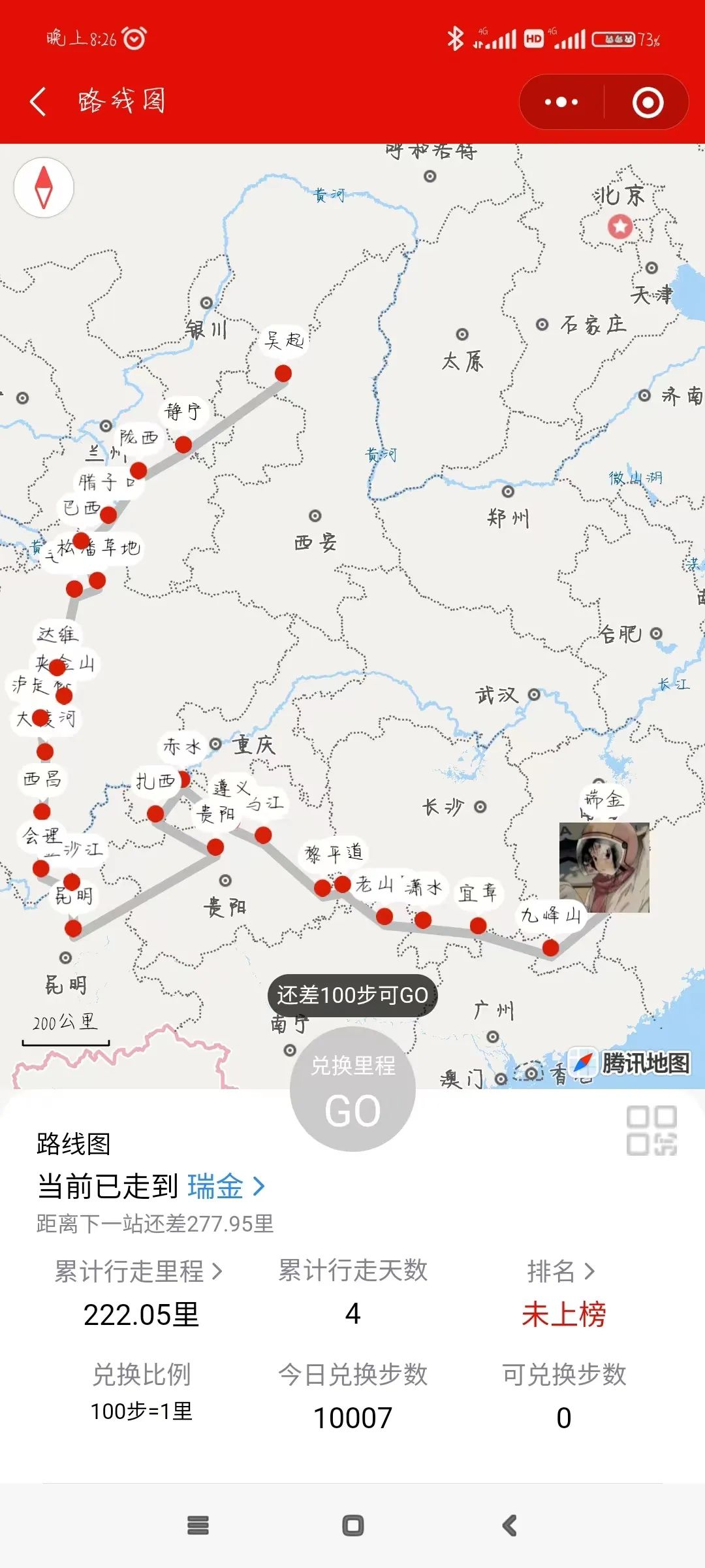 为体验红军两万五千里长征的艰苦和革命先烈的顽强精神,扎实推进党史学习教育走深走实,培养学生不怕吃苦,敢于争先的革命主义精神。我院于9月19日开展以“重走长征路 绿色健康行”为主题的云上健步走活动。本次活动参与人员共计20人,由党总支副书记&团总支书记张雪组织参加。
