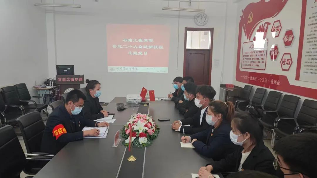 2022年,是中国共产党成立101周年,新中国成立73周年,同时我们也即将迎来党的二十大胜利召开。2022年10月12日,石油工程学院开展主题为“喜迎二十大”的党课学习活动。党总支书记刘雁春和全体在校党员参与此次会议,会议由学生党支部书记王娜主持。