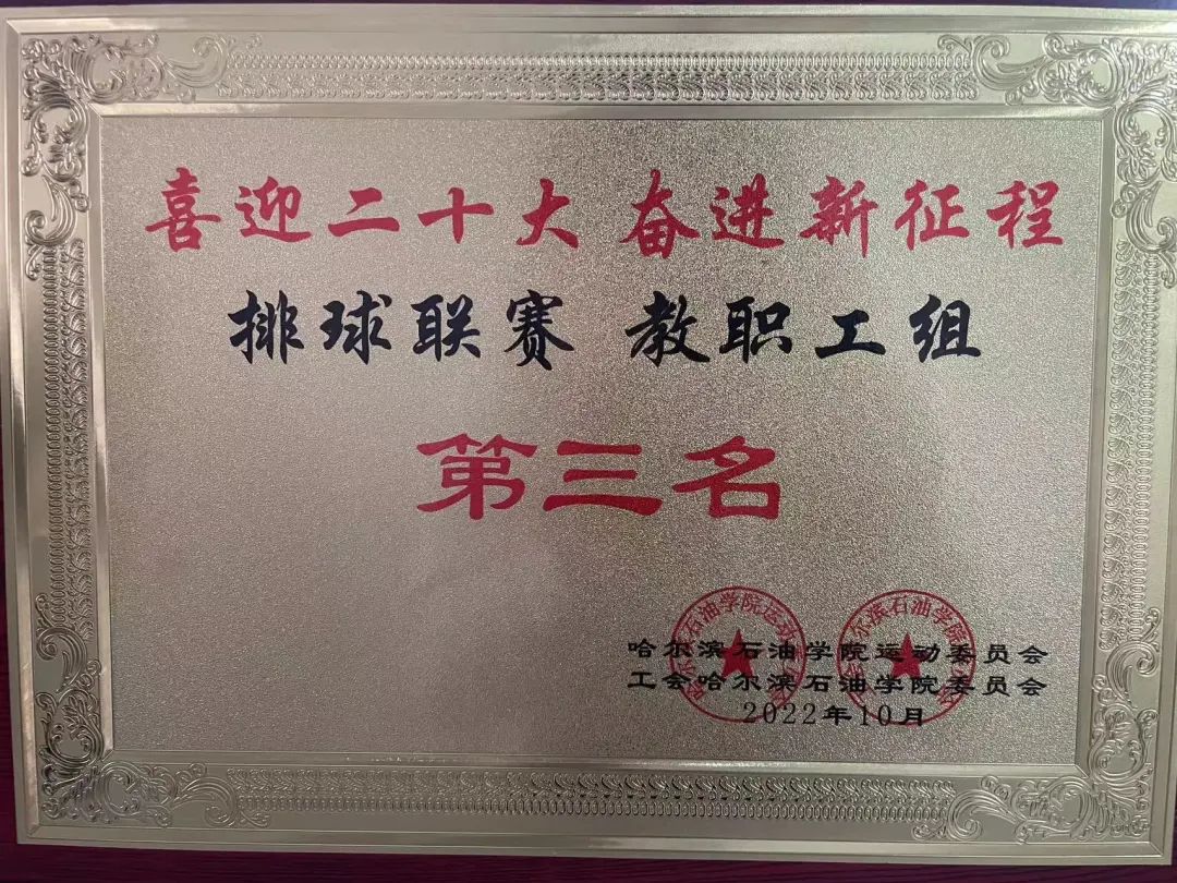 为丰富师生课余生活,学校举办“喜迎二十大 奋进新征程”排球联赛。在紧张刺激的比赛中,我院教职工代表队一马当先,夺取第三名!