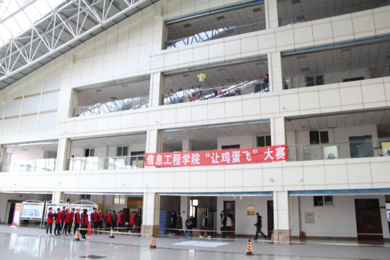 为丰富大学生课余生活,提高同学们的创新能力。信息工程学院于11月19日中午12时在主教阳光大厅成功开展“让鸡蛋飞”大赛。此次比赛邀请到的嘉宾有院辅导员黄家政及学生会主席团成员,全体18级同学观看本次大赛。本次大赛旨在培养同学们的创新精神,发掘同学们的动手实践能力。